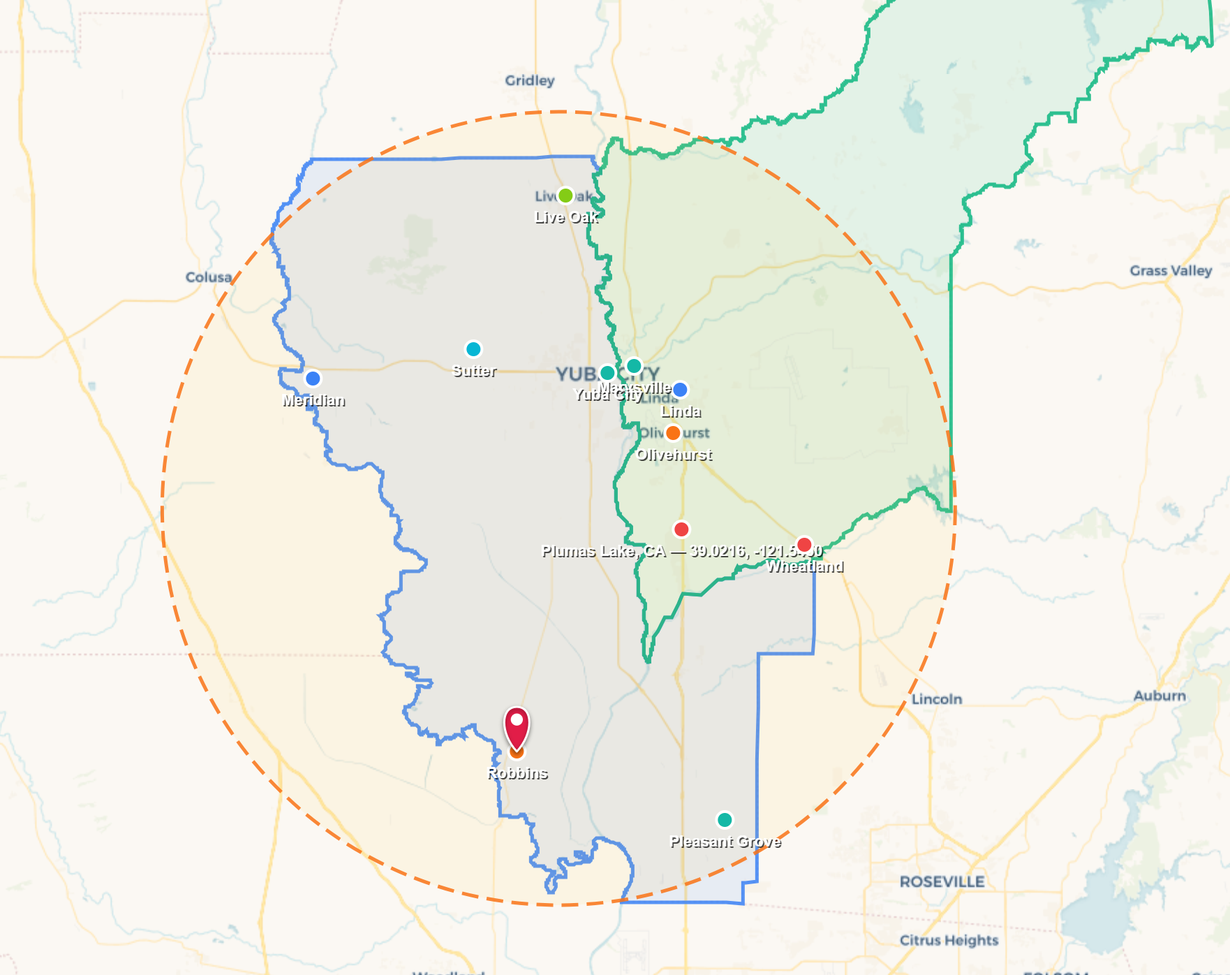 Robbins, CA, and all of Sutter and Yuba Counties